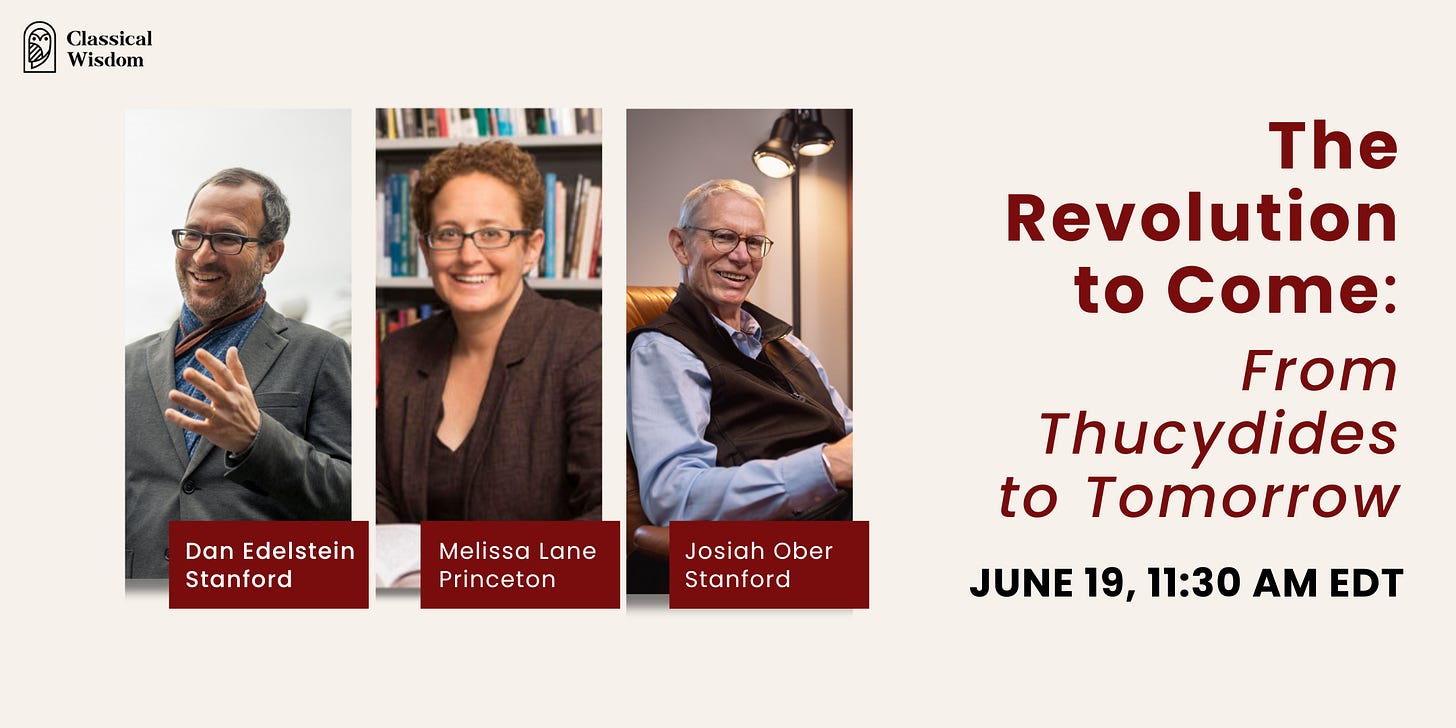 If you think “revolution” was invented in 1789, think again—Thucydides was already warning us about it 2,400 years ago. In this dynamic online forum, Dan Edelstein, Professor of French at Stanford University, is joined by classical-political heavyweights Josiah Ober, Professor of Political Science and Classics at Stanford University, and Melissa Lane, Professorship of Politics at Princeton University, to excavate the deep past of an idea that still jolts headlines and rattles parliaments.