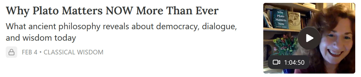 After all, this week at Classical Wisdom was all about Greek philosophy: Members can now check out our exclusive podcast on Why Plato Matters NOW More Than Ever with Professor Angie Hobbs.