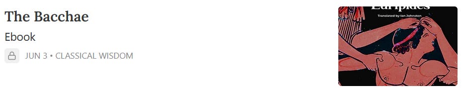 A Masterpiece of Greek Tragedy Members can now access our exclusive e-book of The Bacchae by Euripides, featuring bonus material from Classical Wisdom contributors!