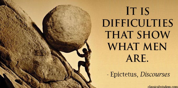 According to one story, Epictetus was crippled by a cruel master. Others say he was born with a disability. Either way, he walked with crutches and bore a physical reminder of life’s harshness. Yet, despite his lowly status, Epaphroditos allowed Epictetus to study under the Stoic philosopher Musonius Rufus. When his master died, Epictetus was freed and began teaching philosophy himself.
