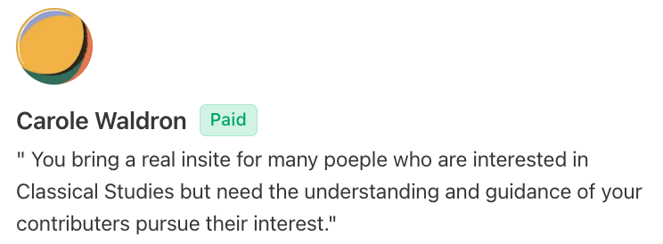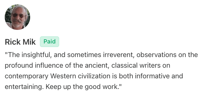 It’s a pleasure to be part of such a thoughtful community - filled with philosophers, history lovers, mythology enthusiasts, and students of ancient languages. You make this space engaging, curious, and alive.
